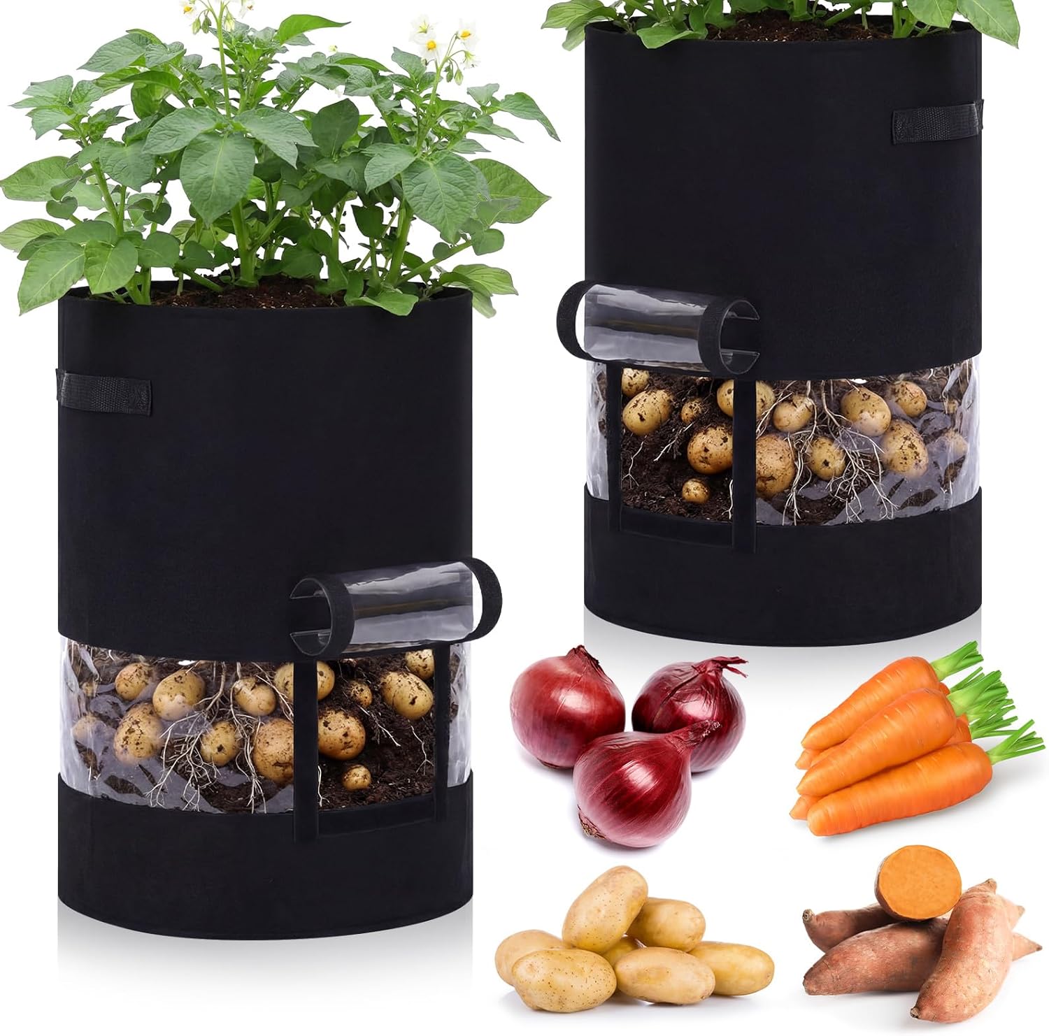 Baderke 4 Pack Visible Potato Grow Bags with Harvest Window, 360 Visibility Plant Grow Bags with Handles for Planting Potatoes, Tomatoes and Vegetables (30 Gallon,Black)