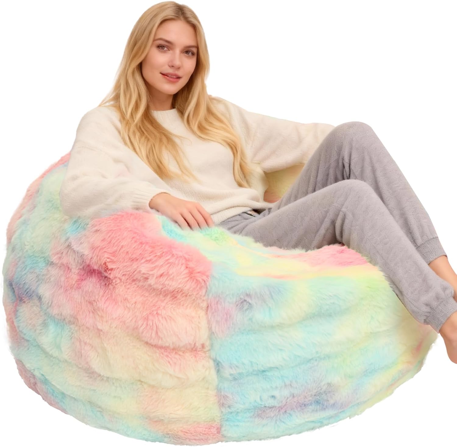 Parts List:1 x Plush Bean Bag Chair Cover (Cover Only)Description:Our plush synthetic rabbit fur bean bag cover is soft , warm , hypoallergenic and enduring (with non slip bottom) , supporting custom fillings for lounge use and clutter organization . It features a top handle for easy transport , complements various decors with a puffed waffle texture , and is easy to clean with gentle machine washKey Features:Perfect present for Housewarming/Anniversary/Thanksgiving/Christmas , bean bag cover delivers comfort and style to loved onesSpecification:Material: Faux Rabbit Fur / PlushDimensions:Small Size: Bottom Dimensions: 70 x 70 cm/28 x 28 inch, Height: 80 cm / 32 inchLarge Size: Bottom Dimensions: 96 x 96 cm/38 x 38 inch, Height: 101 cm / 40 inchStyle (optional): Colorful Small, Colorful Large, White Small, White Large, Green Small, Green LargeNote:1. There may be slight differences between the picture and the actual color of the commodity. We will try our best to show you the exact color2. Please allow slight dimension differences due to manual measurement