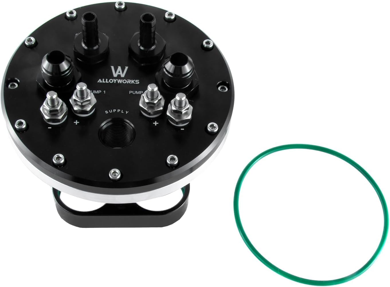 Features: Suitable for Tanks with Height 180-220mm *Pumps not included. Hanger only Twin Fuel Pump Hanger 39mm Suits single or dual Walbro 255 & 460 39mm – 40mm Pumps Anodized black, this alloy dual fuel pump hanger can be fitted with one or two pumps, and has dual stainless electrical terminals allowing the pumps to be staged separately. E85 ready with seals and viton o-rings. AN -8 O-Ring Ports These hangers are ideal for retrofitting an EFI fuel pump into older steel or plastic tank carby vehicles. Dimensions in attached image but adjustable between 180mm and 220mm by mounting the pump at different height. Requires O-Ring weld ring in related products below Fuel Pump Compatibility: Type: Fuel Pump Hanger Replacement for Ti Automotive (Walbro) EFP-500 F90000262 F90000267 F90000274 F90000285 F90000295 GSS340 GSS341 GSS342 GSS350 GSS351 GSS352