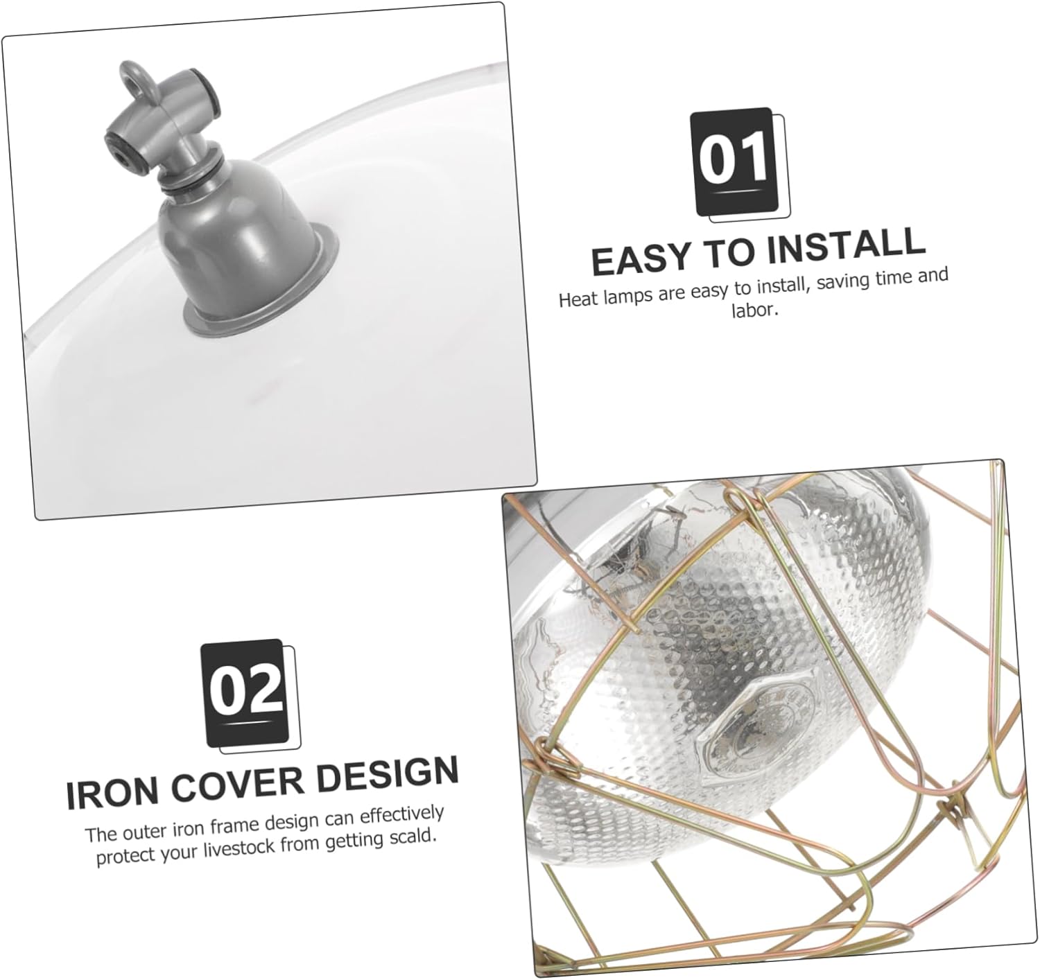 Package List 1 x Poultry Heat Lamp Characteristics -Size:29.00X29.00X18.00cm/11.40X11.40X7.07in breeding heat preservation lamp -Power:150W outdoor heat lamp -Material:Metal,Plastic,Glass heat lamp -Color:Multi brooder heat lamp - Made of iron, glass material, this small heating lamp is portable and practical for long time use heat lamp for chickens. - The lamp body is made of iron and glass, fireproof and heat-resistant. When it works, the shell is warm but does not burn chicken heat lamp. - Suitable for chicken, and other poultry to keep warm. When working, the heating efficiency is high, and the temperature distribution is uniform heat lamp for chicken. - your pets feel warm and comfortable in cold winter. It can heat your reptiles evenly, let your reptiles and healthy lamp. - It can provide a wonderful, warm and healthy growing environment for your pets brooder lamp.Goods Informationsimulates bird heat lamp This is a heat preservation lamp for pet use.poultry heat preservation and heating lamps The thermostat the heat from overheating, and when the temperature reaches the highest setting, the internal thermostat will stop heating and bring the temperature down to the appropriate temperature